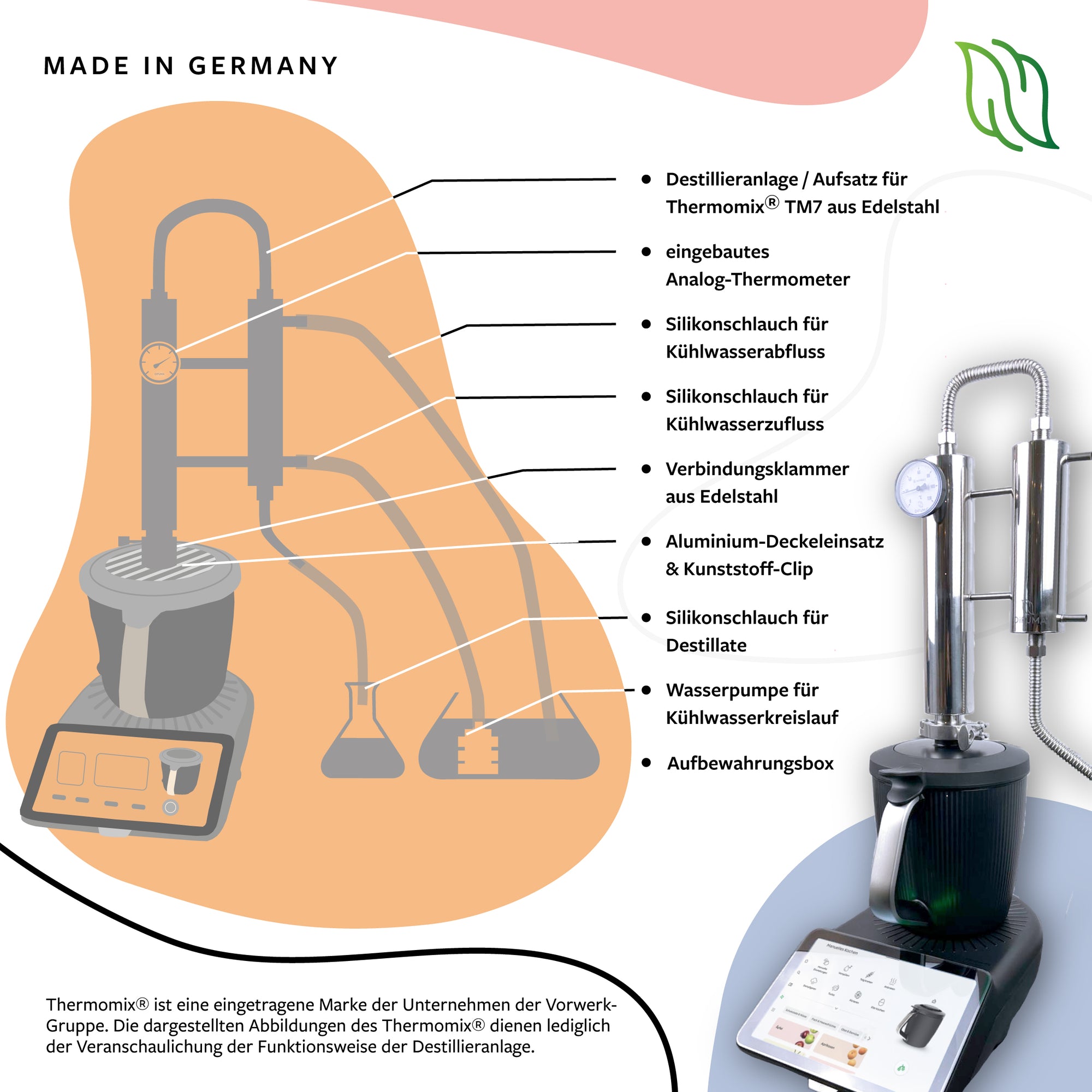 - Einfache & sichere Anwendung – Plug & Play-Installation für den Thermomix®, destilliere ohne Vorkenntnisse Hydrolate, ätherische Öle, Gin & mehr!